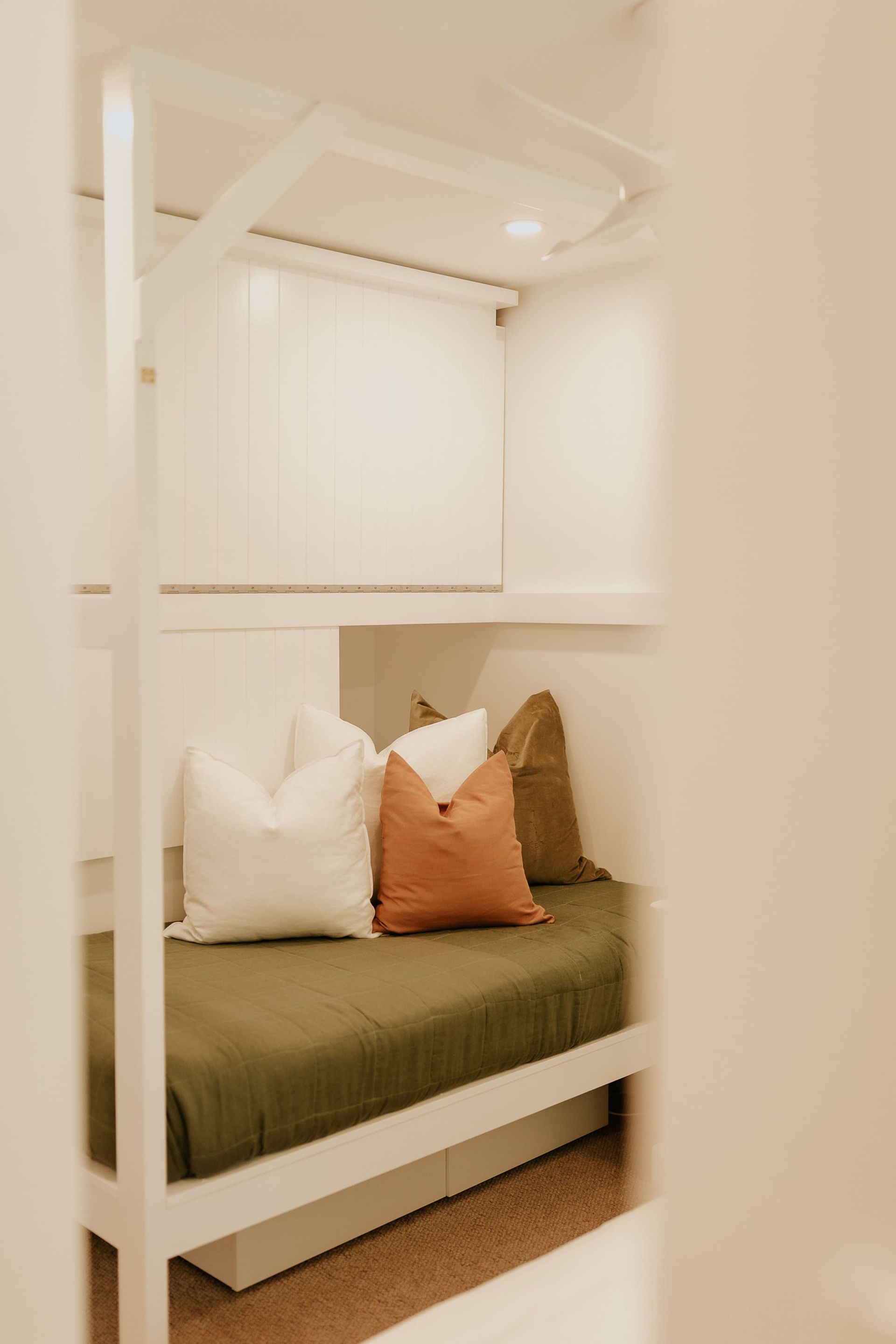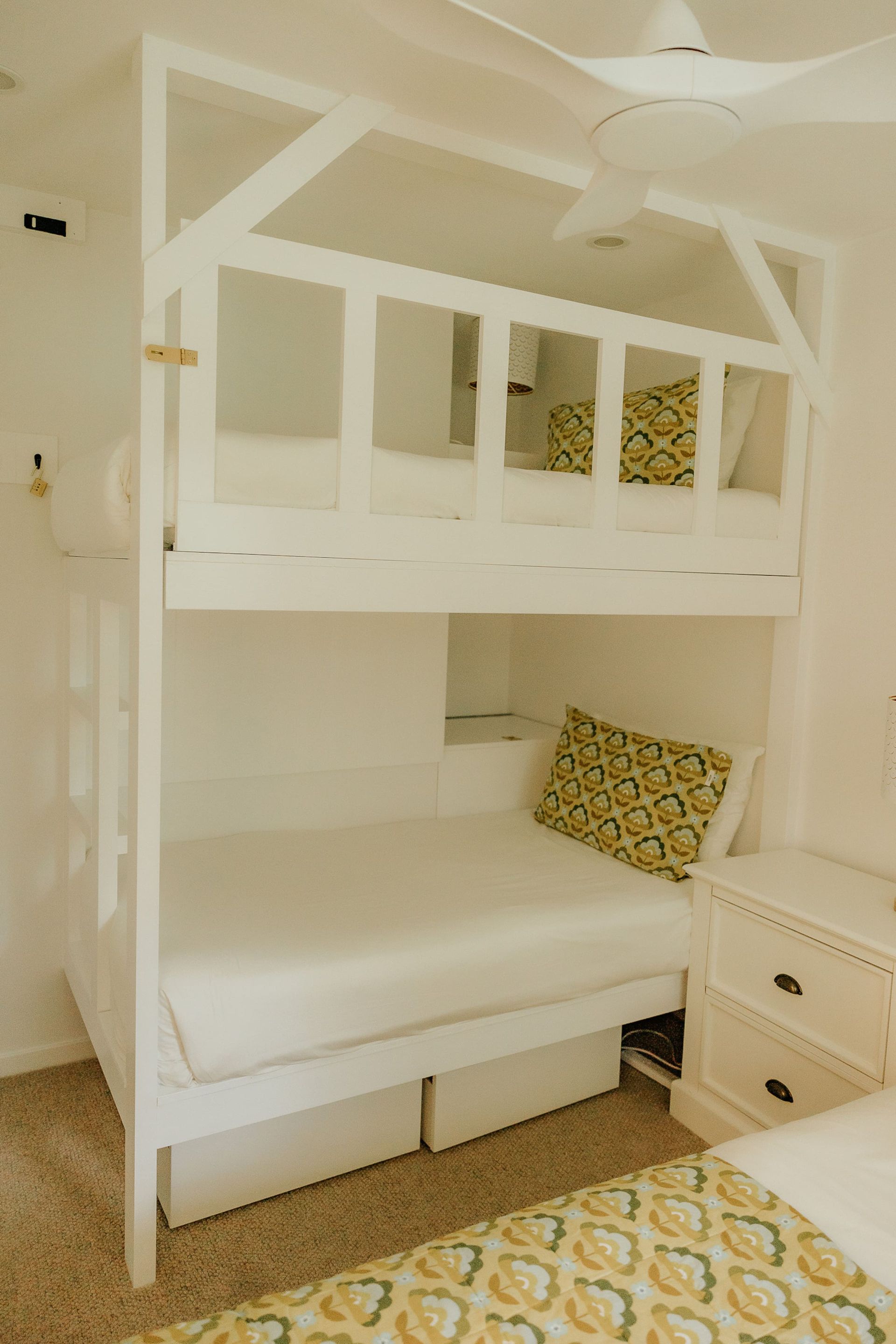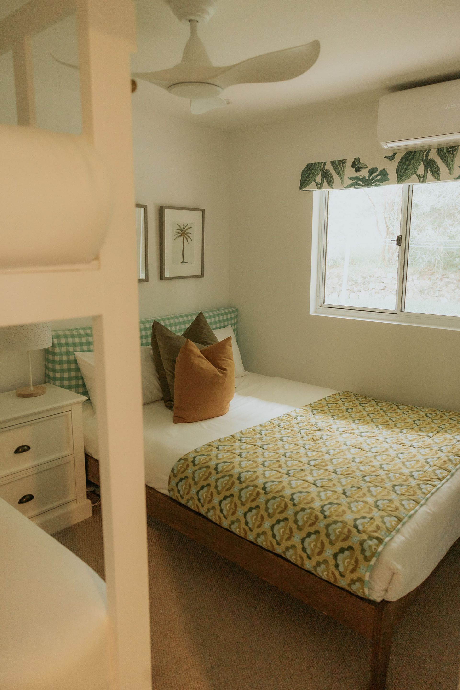 The Villa has two bedrooms and can sleep up to 6 people - Bedroom 1 has a queen with ensuite, Bedroom 2 has the main bathroom, a queen bed and set of single bunks/day bed when bunks are not in use.