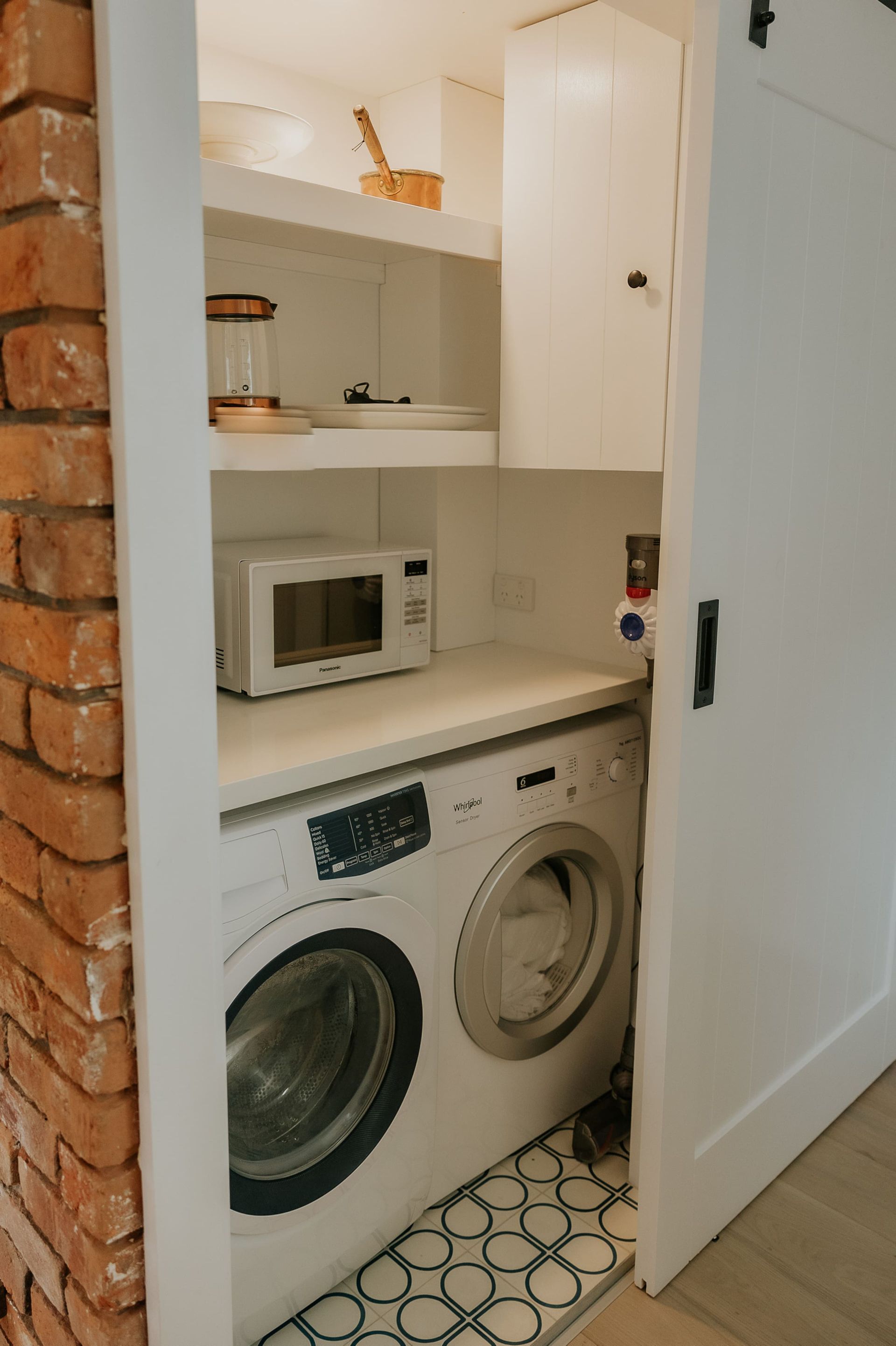 The kitchen is fully equipped with oven, stove top, microwave, dishwasher. The laundry is separate with washing machine and dryer. We provide coffee beans, tea, milk, basic pantry condiments, dishwashing tablets and laundry liquid.