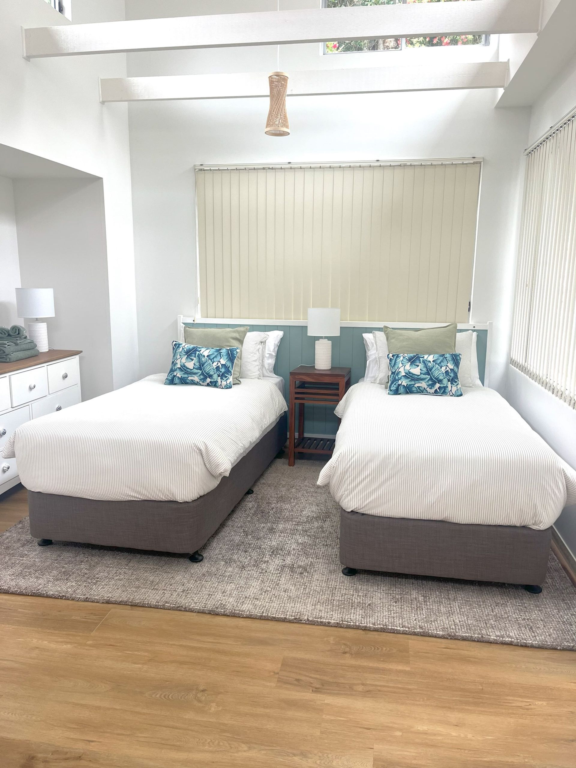 This charming 3-bedroom retreat sleeps up to six guests, featuring two queen bedrooms and a third bedroom with a king bed that can also be split into two singles, making it perfect for families or groups. Two bathrooms are fully stocked with soaps, shampoo, and conditioner, and linen are provided for your convenience.
